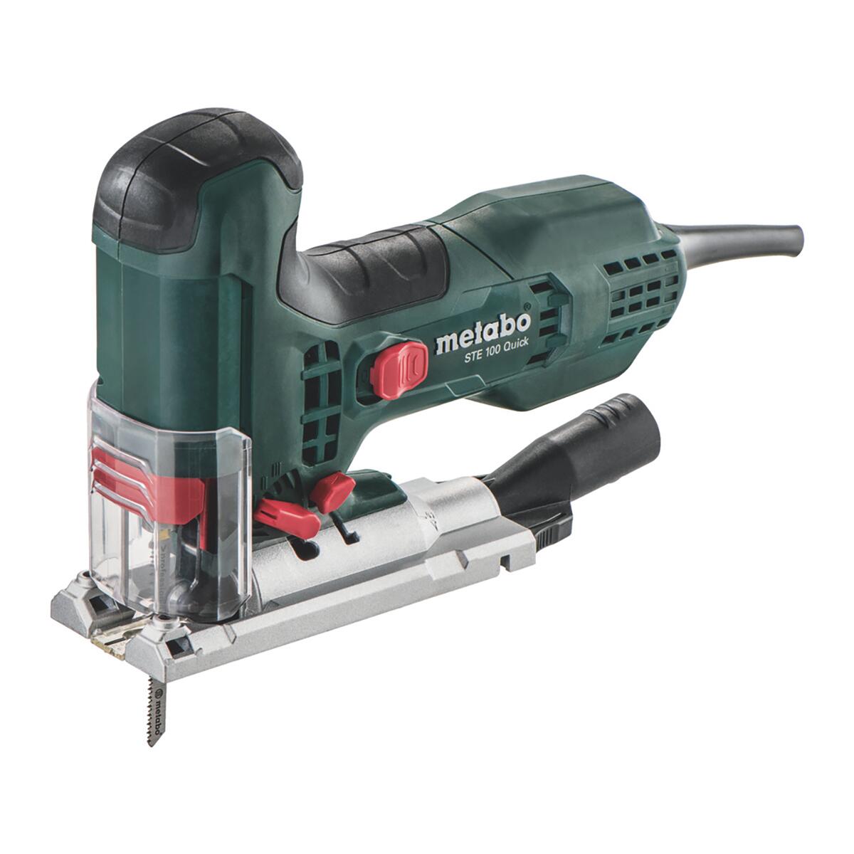 Seghetto alternativo STE 100 Quick. Seghetto alternativo. Taglio preciso e appropriato al materiale grazie al numero di corse variabile, movimento pendolare e conduzione ribassata e molleggiata della lama. Possibilità di aspirazione grazie al collegamento a un aspiratore universale. Elettronica a onda piena Vario-Constamatic (VC) per lavorare con numero di corse adeguate ai materiali, che rimangono costanti anche sotto carico