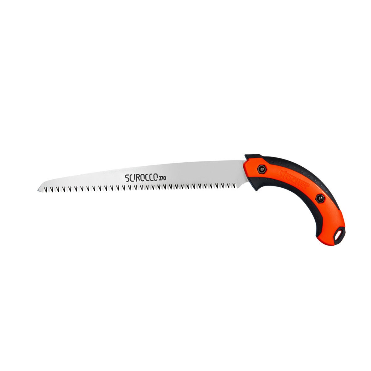 Seghetto marca Stocker con lama in acciaio cromato e manico in plastica e gomma.