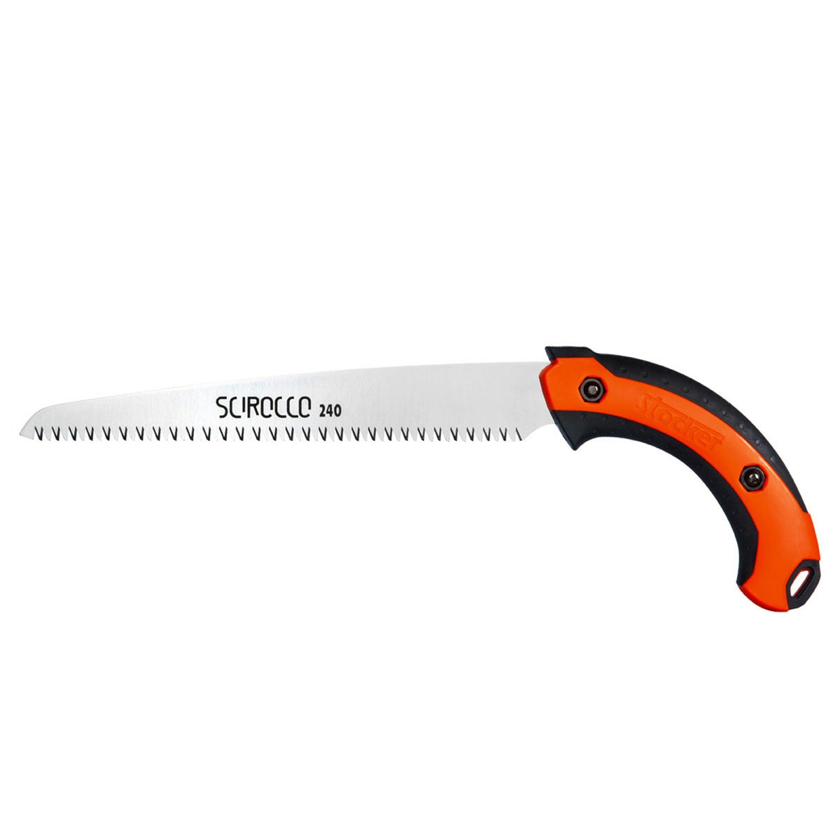 Seghetto marca Stocker con lama in acciaio cromato e manico in plastica e gomma.