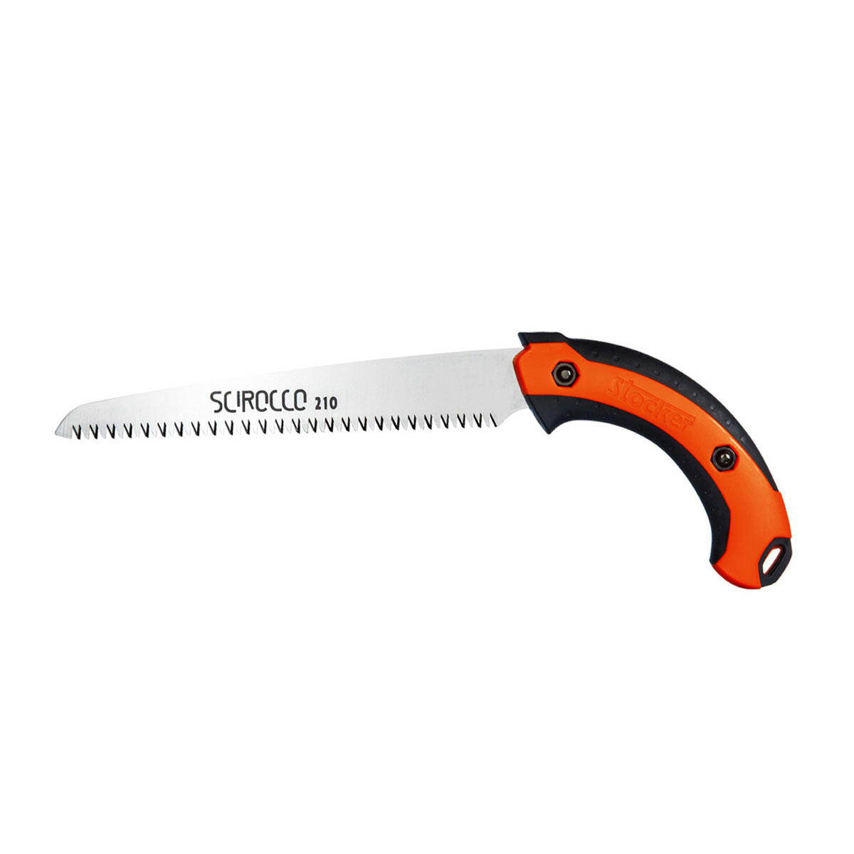 Seghetto marca Stocker con lama in acciaio cromato e manico in plastica e gomma.