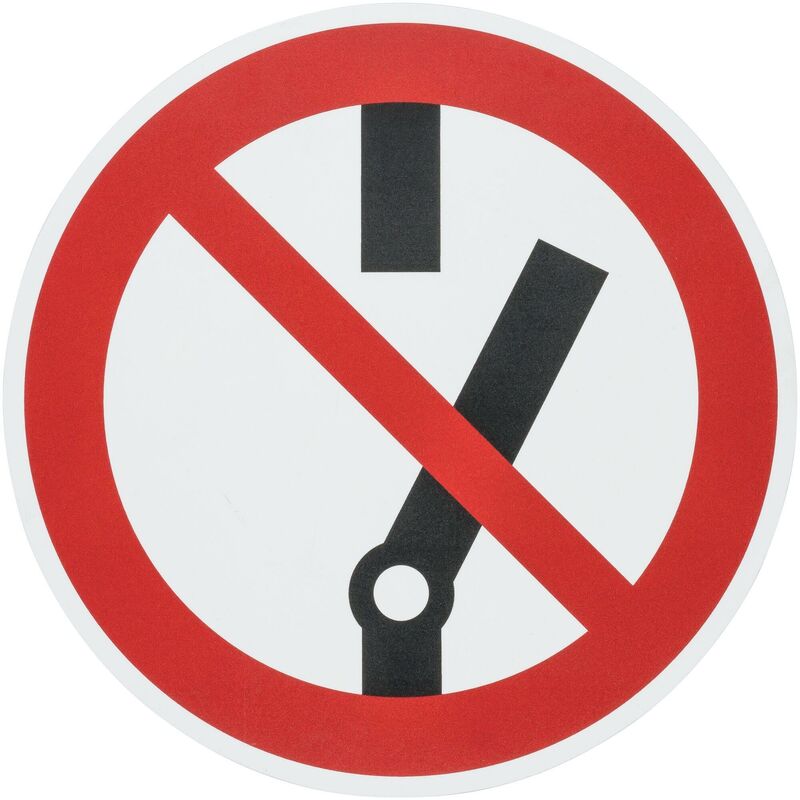 In plastica Forma: circolare con diametro 200 mm Colore base: bianco con bordo rosso Simbolo: «Attenzione - Non azionare!» Made in Germany Dimensioni dell'imballaggio 1