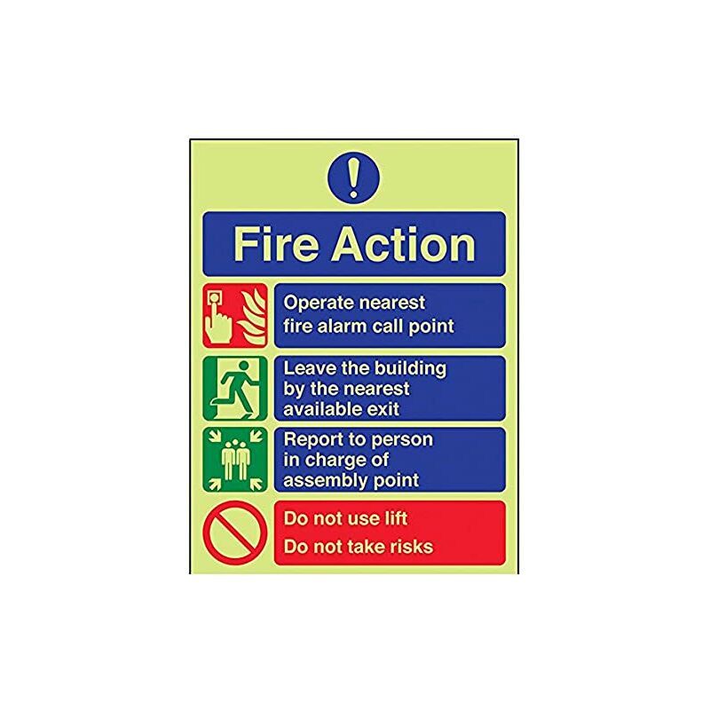 V Safety, segnale generico per misure antincendio 12003AN-G, comportamenti proibiti, non utilizzare l'ascensore, fosforescente, in plastica, verticale, 1 x 150 x 200 mm, blu, verde e rosso