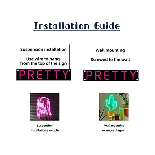 □ Segni acrilici Facile da usare, adatto per 100V-240V alla maggior parte dei paesi, con un dimmer, dopo il collegato, premere il tasto di accensione per illuminare il segno al neon, premere il tasto freccia per regolare la luminosità.Solo uso interno.