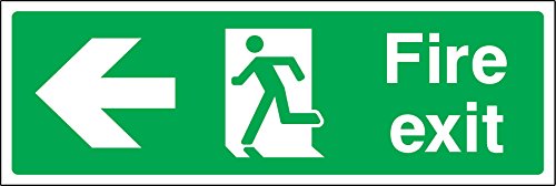 Segnale di sicurezza per uscita d'emergenza a sinistra.