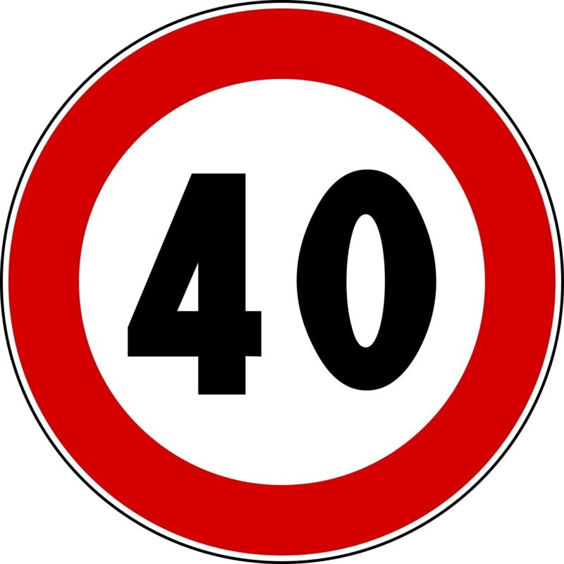 SEGNALE DI DIVIETO LIMITE MASSIMO DI VELOCITA' FIG. 50 40Km/h In lamiera classe 1. Diametro cm. 60.
