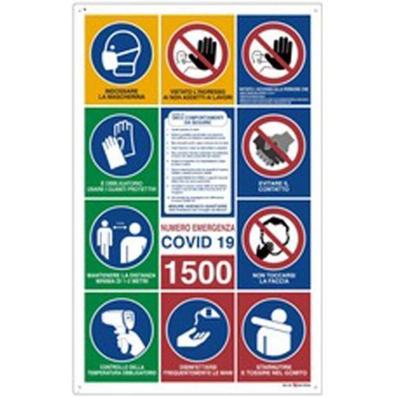 SEGNALETICA CANTIERE "11 SIMBOLI COVID-19" IN POLIONDA DIM 138X88 Codice Prodotto:DES24015 Marca:DEBV3 Con Codice EAN:8000071240154 Altre Foto: DEBV3
