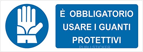 2 SEGNALETICHE ADESIVE DI SICUREZZA"OBBLIGO DI INDOSSARE I GUANTI PROTETTIVI" UTILIZZABILI ANCHE ALL'ESTERNO