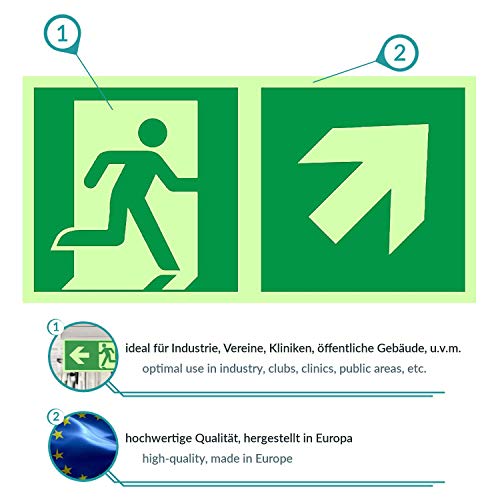 Anro segnali di uscita di emergenza | Freccia in basso a sinistra | Si illuminano al buio e Autoadesivo | Segno di sicurezza e avvertenza PVC | 150 x 300 mm