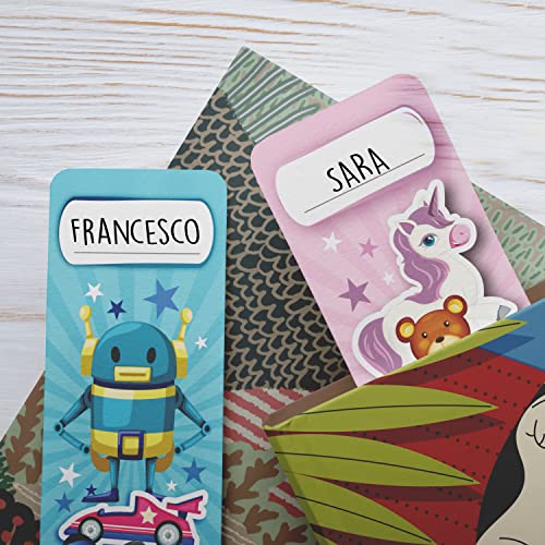 Segnalibri Bambini Particolare - Grazie al particolare spazio per scrivere all'interno il nome del tuo principe o della tua principessa, puoi personalizzare il segnalibro rendendolo unico . I bambini rimarranno entusiasti dai fantastici design .....non smetteranno mai più di parlarne !