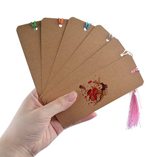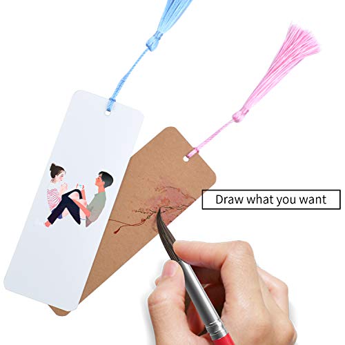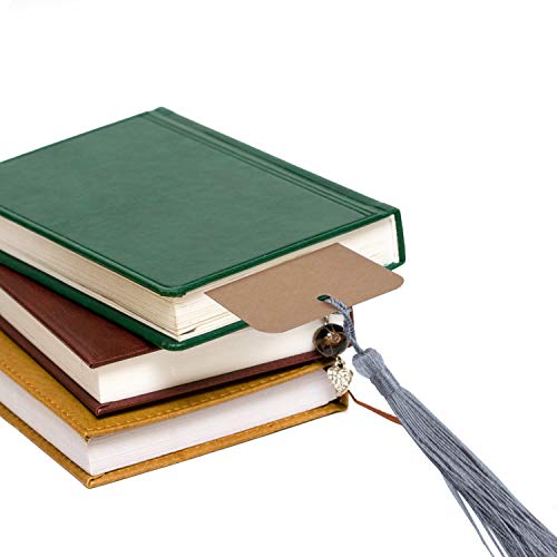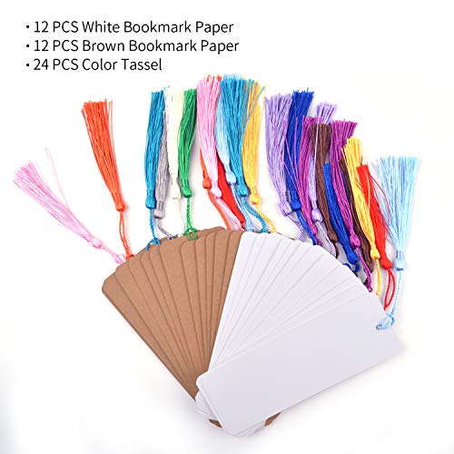 Segnalibri di carta con nappa, 24 segnalibri in cartoncino di carta kraft con 24 nappe colorate per progetti fai da te e etichette regalo (12 pezzi bianchi + 12 pezzi marroni)