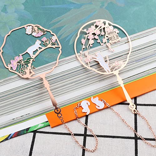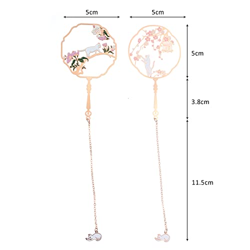 2PCS Segnalibri in metallo classico vintage Hollow Book Page Marks con nappa ciondolo gatto e fiore Partterns forniture per la lettura per lettore oro rosa