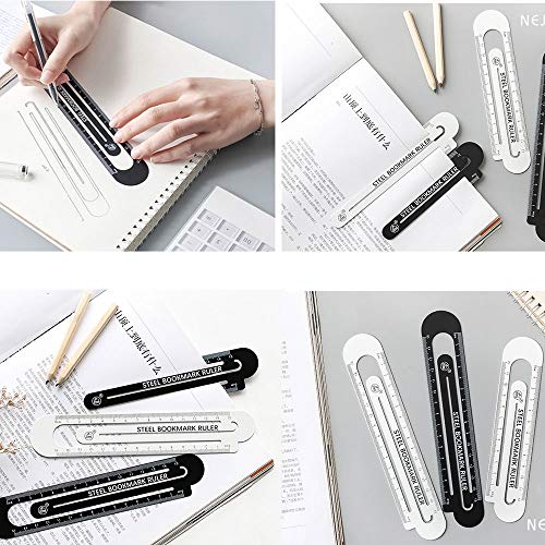 2 segnalibri multifunzionali in metallo e righello da 15 cm, strumenti di misurazione classici in bianco e nero