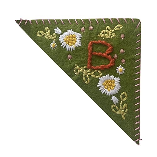 BAOK Segnalibro angolare per libri - Pennarello a libro con grazioso ricamo a forma di lettere floreali, in feltro, segnalibro floreale per gli amanti della lettura del libro