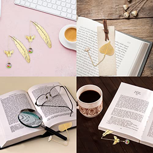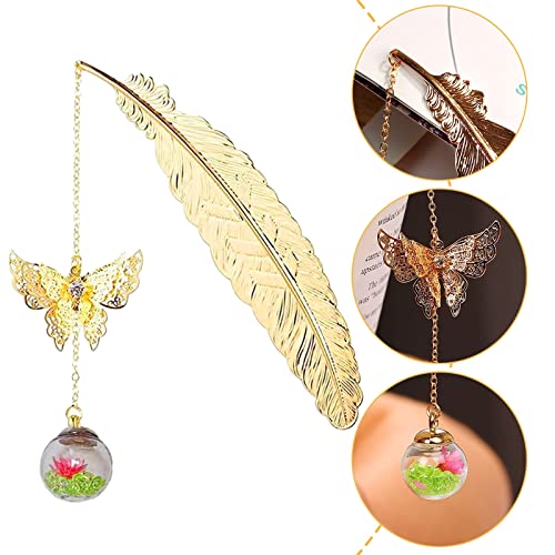 【L'articolo include】2 segnalibri con piume e 1 segnalibro con foglie. Design raffinato. I segnalibri in piuma d'oro con farfalle realistiche in metallo 3D e gli intramontabili ciondoli floreali a sfera in vetro sembrano opere d'arte classiche ed eleganti.