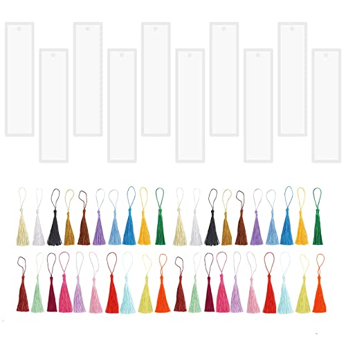 DIY Stampo in Silicone Trasparente: Riceverete 10 segnalibri rettangolari medi in resina e 40 mini nappe delicate in 20 diversi colori, ci sono 2 nappe per ogni colore.