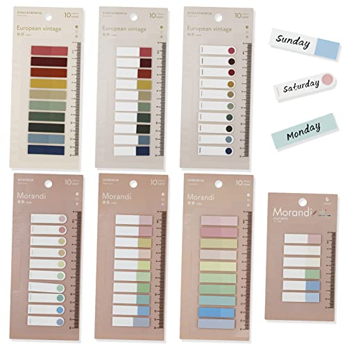 La confezione include: 7 foglietti adesivi rettangolari, 1200 etichette in totale, viene fornito con un righello da 14 cm, molti colori diversi come mostrato.