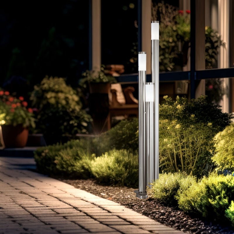 Descrizione Questa elegante lampada da terra si caratterizza per il suo design insolito e l'ottima fattura. La lampada da terra formosa è ideale per l'uso esterno grazie alla sua classe di protezione IP44. Questo modello è composto da tre lampade di diverse altezze e ha una dimensione totale di 1,7 metri. Tre lampadine a LED sono incluse! Particolare lampada • Tipo di lampada: lampada da terra • Materiale: acciaio inossidabile, plastica • Colore: argento, opale • Grado di protezione: IP44 • Classe di protezione:1 • Diametro lampada in cm: 7,6 • Diametro x altezza in cm: 28x170 • Prese: 3x E27 • Lampadina inclusa: sì • Potenza della lampada: 3x 9 watt • Flusso luminoso totale: 3x 810 lumen • Colore della luce: bianco caldo • Alimentazione: 220-240V, 50-60Hz Dettagli lampadine • Tipo di sorgente luminosa: LED • Attacco: E27 • Forma: palla • Materiale: alluminio, plastica opale • Flusso luminoso: 810 lm (lumen) • Consumo energetico: 9 kWh/1000h • Temperatura colore: 3000 K (Kelvin)