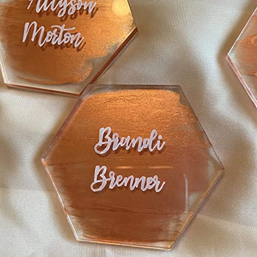 Qualità premium: i segnaposto esagonali in acrilico trasparente sono realizzati in acrilico di alta qualità, trasparente, durevole e robusto. Ogni misura 4 cm da un'estremità all'altra e ha uno spessore di 4 mm. È possibile utilizzare qualsiasi penna a base di acqua o olio per scriverci sopra. È inoltre possibile tagliare al laser o praticare fori per appenderli.