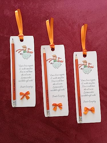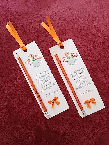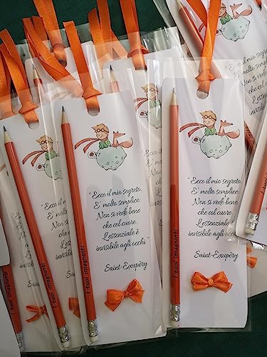 Segnaposto Battesimo Piccolo Principe Arancione Segnalibro con Matita Incisa Personalizzata con Nome e Data 20x7 cm Frase di Papa Francesco oppure a Scelta (20)