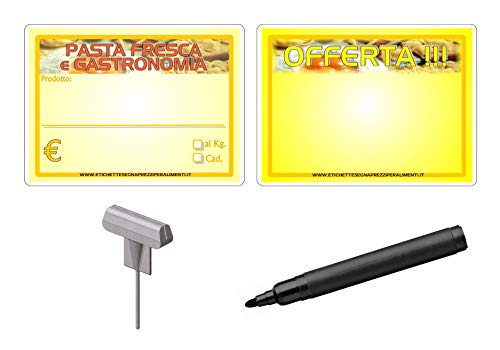 Kit 30 segnaprezzi plastificati pasta e gastronomia 60x90mm +30 supporti +1 pennarello