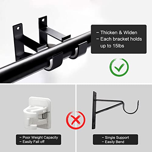 Staffa per aste per tende robuste: il supporto per aste per tende è realizzato in alluminio di alta qualità, i ganci per tende in metallo spesso da 5 mm forniscono una maggiore capacità di carico rispetto alle normali staffe per tende autoadesive. Il supporto per asta per tende può contenere fino a 6,8 kg per staffa e senza piegarsi o deformarsi.