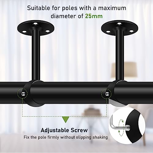 SEGNAYEN Staffe per asta per tende da soffitto, 25 mm, staffe in metallo resistente, ganci di supporto per asta per armadio, staffe da soffitto nere per finestre e tende da doccia, confezione da 4