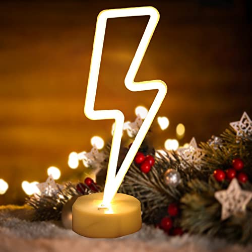 Neon segni della luce LED segni al neon fulmine lampade Decor batteria/USB alimentato Night Lights con piedistallo luce per Natale, festa di compleanno, soggiorno, camera da letto, tavolo per bambini