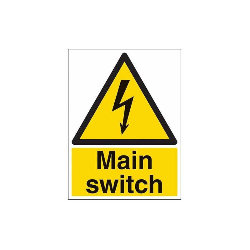 V Safety segni 68001bc-rInterruttore principale Warning Sign elettriche, 1 mm in plastica rigida, ritratto, 300 mm x 400 mm, colore: nero/giallo 300 mm x 400 mmSize: 300 mm x 400 mm