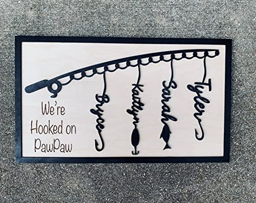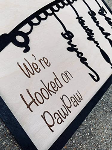 Segno di pesca in legno Siamo agganciati al nonno, papà, papà, festa del papà, segno di compleanno, personalizzato, viaggio di pesca, regalo per lui