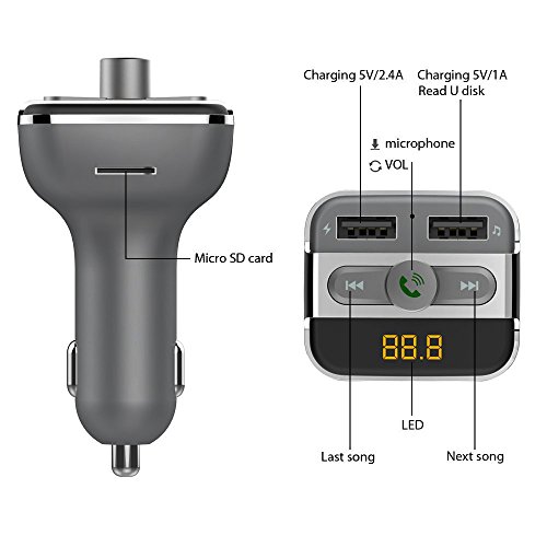 SEGURO Wireless Bluetooth FM Trasmettitore Car Kit Ricevitore a mano senza fili di chiamata Dual USB MP3 Player Supporto Driver Flash USB e Micro SD Card per Apple iPhone iPod iPad Samsung Huawei Smartphone Android ecc