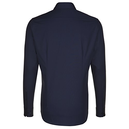 La camicia slim fit ha un colletto centrico e un orlo sul passaporto interno e una sottile striscia di rinforzo sul polsino interno.