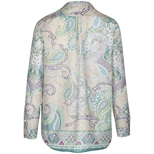 Camicia sciolta con braccio tesa e dettagli increspati nella parte anteriore e posteriore. Parte posteriore con cuciture e passanti. Stampa in cashmere in viscosa scorrevole.