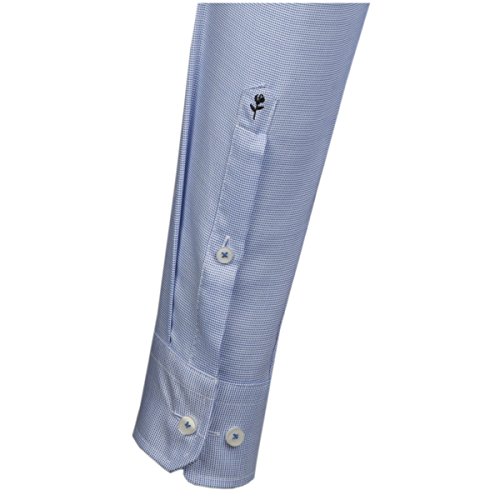 Camicia a maniche lunghe con colletto New Kent, in puro cotone, non necessita di stiratura, a quadri, blu medio