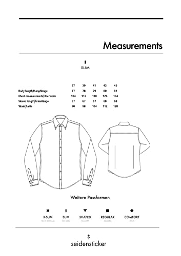 Questa camicia Seidensticker con la vestibilità Tailored ha un taglio sciancrato e una silhouette aderente attillata. Tailored, vestibilità prima chiamata Schwarze Rose, è leggermente più larga di Slim ma non tanto quanto Modern (Regular Fit).