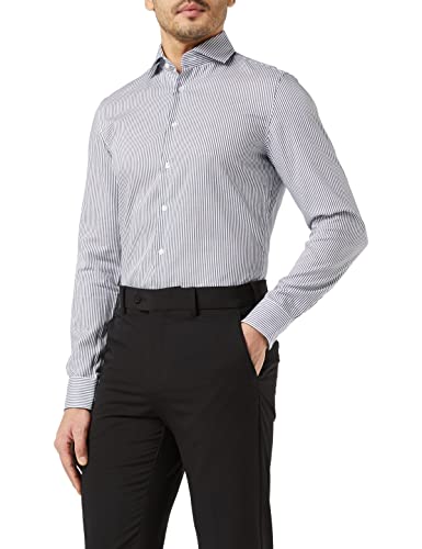 Seidensticker Slim Fit Langarm mit Spread Kent-Kragen Gestreift-Seasonal-100% Baumwolle Camicia Formale, Multicolore (Dunkelblau 19), 37 Uomo