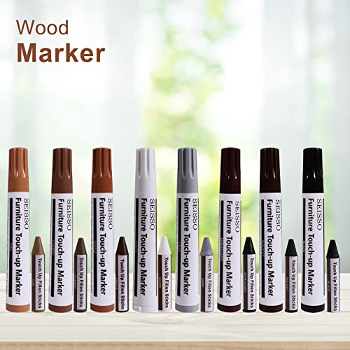 SEISSO Pennarelli Legno, Kit di Riparazione per Mobili 17 Pezzi Pennarelli e Bastoncini di Cera e Temperamatite, per Macchie,Graffi