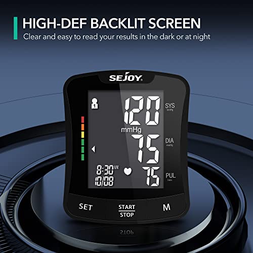 Sejoy Misuratore di Pressione da Polso, Misuratore Pressione Professionale Elettronico, Display LCD Retroilluminato, 120 Memorie 13,5-21,6 cm Bracciale Regolabile, Batterie e Borsa, Nero