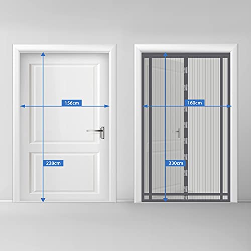 Sekey 160x230 cm Tendina Magnetica per Zanzariera, Ideale per Porte da Balcone, Cantine, Terrazze (Ritagliabile in Altezza e Larghezza), Facile da Montare, Colore: Grigio