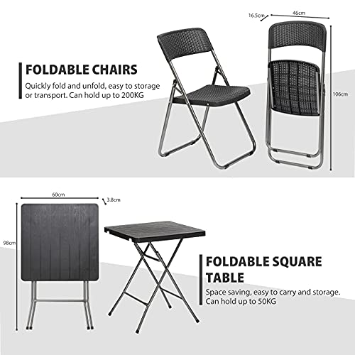 Sekey Set di mobili da balcone, Set di mobili da giardino composto da 3 pezzi da esterno, Sedie per il tempo libero in rattan con tavolino, Pieghevole. Per patio e terrazze all'aperto, Nero