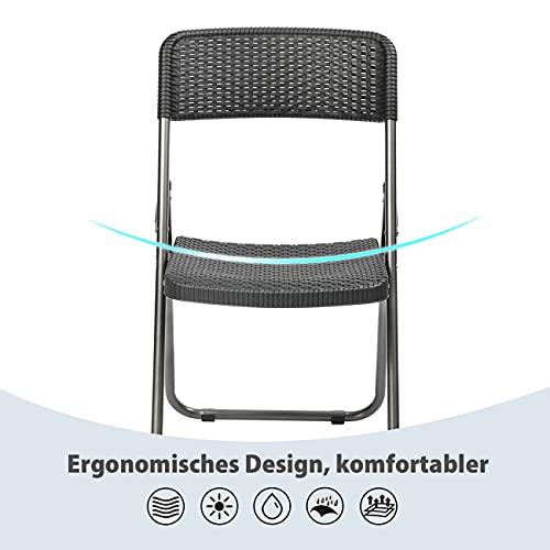 Portata massima: il rattan impermeabile è facile da pulire. La parte della seduta delle sedie pieghevoli ha un design concavo, che la rende più confortevole. Le sedie hanno una portata di 200 kg e il tavolo pieghevole ha una portata di 50 kg. Adatto per posizionare bevande, cibo e frutta