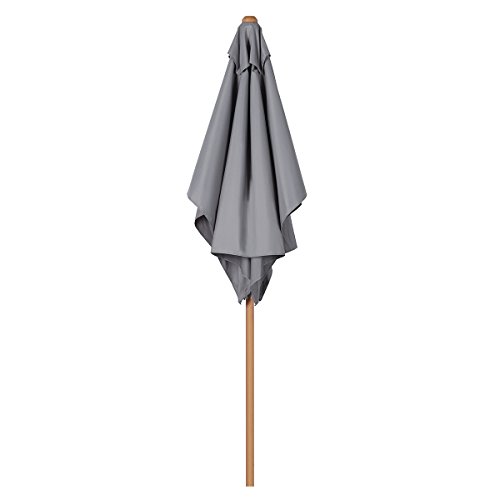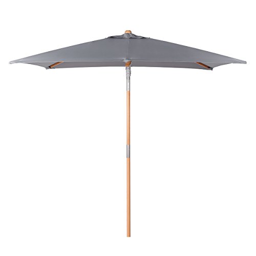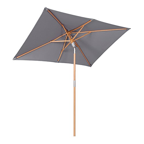 Sekey - Ombrellone Parasole in Legno, 200 x 150 cm, Protezione Solare UV50+, Quadrato, Colore: Grigio
