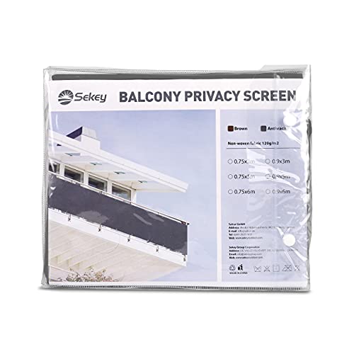 Sekey Recinzione Copertura per Balcone Protezione Privacy Schermo in Tessuto Non Tessuto Opaco, per Balcone Giardino terrazza, con Occhielli Corde e Fascetta, Antracite 0.9×5m