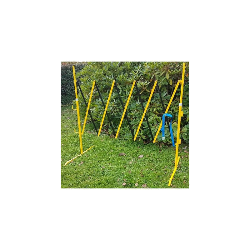 Barriera espandibile, dritta 2,6 m Giallo/Nero Barriera espandibile, dritta 2,6 m Giallo/Nero Leggera, robusta e pieghevole, questa barriera protettiva occupa poco spazio. Può essere usato all'interno o all'esterno per guidare o proteggere le aree a rischio. Colore: Giallo/Nero Tipo di vernice epossidica Gambe pieghevoli, bloccate da un magnete - Senza ruote Dimensioni delle gambe spiegate: 77 cm Materiale: Alluminio / tubo d'acciaio Riflettente: no Slitte tenute da dadi di bloccaggio Connessioni tramite 2 ganci maschio x 2 tubi femmina (per l'accoppiamento di più barriere) Bloccaggio dell'estensione a ghiera Uso: Interno / Esterno Lunghezza massima spiegata: 2,6 metri Dimensioni non ripiegato: 2,6 m x 0,90 m Dimensioni in posizione di trasporto: 0,30 M x 1,20 M Peso: 6 Kg