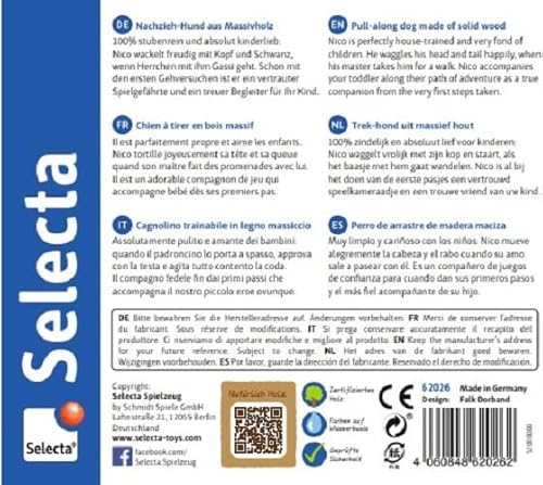 Selecta - Cane Nico, giocattolo da tirare in legno, 1 - 3 anni, 12 cm, 62026