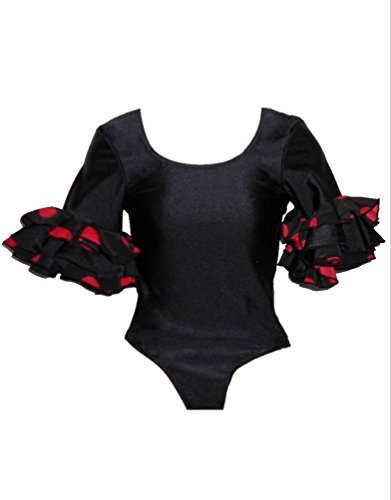 Selecte-plus - Body da danza Flamenco, maniche ai gomiti a pois rossi
