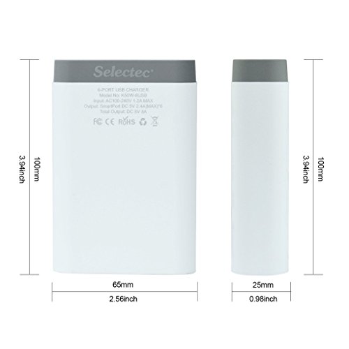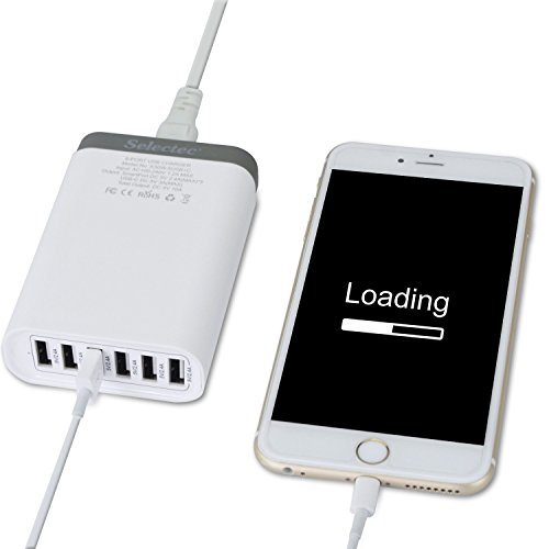 SELECTEC 40WCaricatore USB a 6 Porte, con Output Massima Fino a 2.4A, Compatto per iPhone, iPad, Huawei, Samsung Galaxy, Tablet e Altri Dispositivi USB