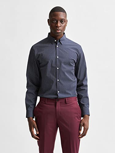 SELECTED HOMME BLACK Slhslimmichigan-Maglietta LS B Noos Camicia, Navy Blazer 2, M Uomo