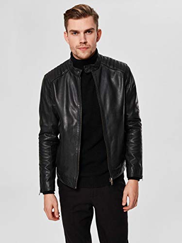 SELECTED HOMME Slh R-03 Racer Leather Jkt W Noos Giacca, Nero (Black), X-Large Uomo