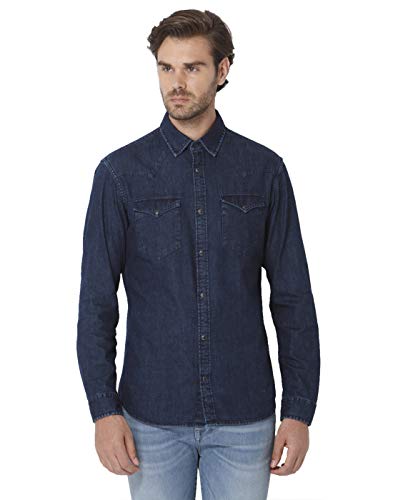 SELECTED HOMME Shnonewill Shirt LS Camicia in Jeans, Blu (Dark Blue), X-Large Uomo