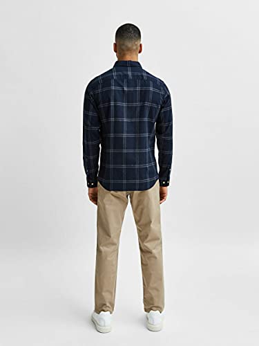 SELECTED HOMME Slhslimflannel Shirt LS W Noos Camicia, Blu (Mood Indigo), S Uomo